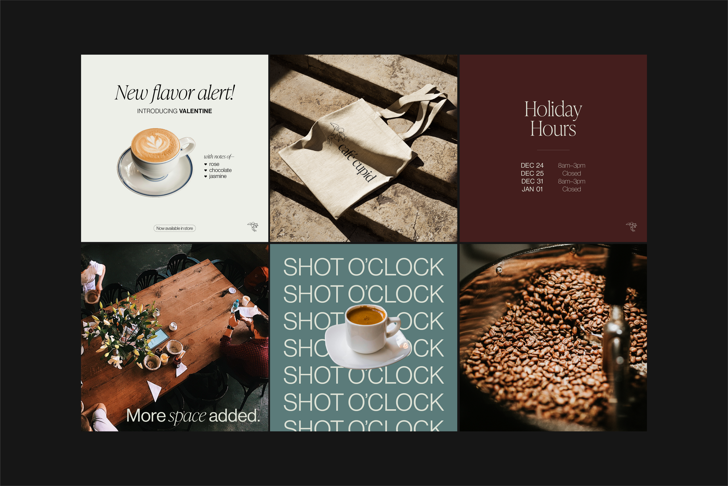 Café Cupid is an ode to the love of coffee. The challenge was to create a brand identity that mixes elegance and fun, creating a sanctuary for the coffee lover set against the story of Cupid.